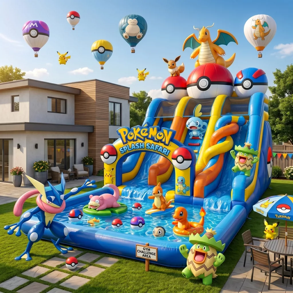 Themed setups, especially those involving well-known franchises, perform well on social media. A Pokemon inflatable pool naturally attracts attention and engagement.